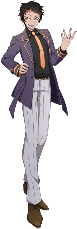 性別:男性 身長/体重:177cm/62kg 年齢:20歳(ペインの一つ下) 一人称:俺、僕 二人称:お前、あんた、キミ 好きなもの:チョコ、リズベット、人との交流 嫌いなもの:ペイン、孤独、暴力 ペインの従兄弟にあたる貴族の青年。 傲慢で自信家だが臆病なため強い者には媚びる。社交的で話が上手いため友人も多い。 昔、ペインと友人になろうとしたが相手にされなかったため彼の事を良く思っていない。またライバル意識のような感情を抱いている。 本編では(好きな人だった!)リズベットと結婚している。